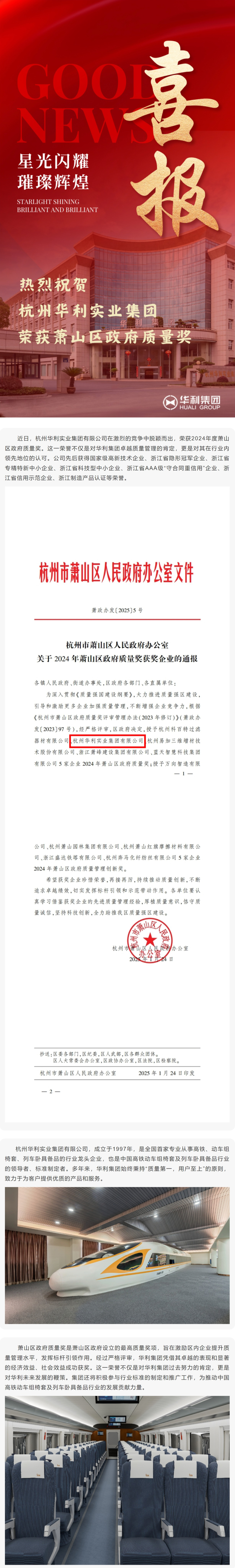 質量鑄就輝煌,杭州華利實業集團榮獲蕭山區政府質量獎